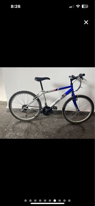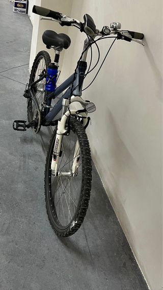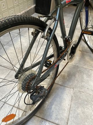 Bicicleta de montaña, para cadete o adulto (talla pequeña, aprox. 1,70 de altura) - Rueda Medida: 54-507 (24x2.0). - Usada, pero todavía puede dar de sí. Necesita limpieza y ajustar frenos. - Sillín algo despegado. - Timbre y guardabarros.