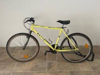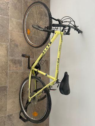 Bicicleta de montaña METTA THUNDER de color amarillo. MTB METTA Thunder, de las que ya no se hacen. Sencilla, resistente y con alma. Ahora necesita cariño, pero restaurada es una bici que se paga cara. Ideal para proyecto, para moverte por ciudad o para quien sabe lo que tiene delante. - Cuadro de aluminio. - 18 velocidades. - Ruedas de 26 pulgadas. - Frenos V-Brake. Si te gusta escríbeme y hablamos #bicicleta #bici #piezas