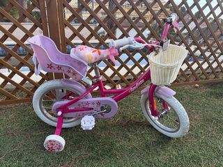 Bicicleta infantil en color rosa, con muy poco uso. - Ruedines incluidos. - Cesta delantera. - Sillín ajustable.