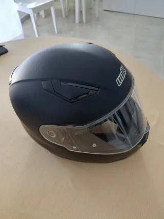 Casco integral HJC de color negro mate. Cuenta con un diseño aerodinámico y visor transparente. - Marca: HJC - Color: Negro mate - Tipo: Integral - Visor: Transparente