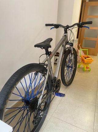 Bicicleta Specialized de montaña en color plateado. - radios azules -la silla es nueva -las gomas son maxxis -puños nuevos -tiene marchas -Cuadro de aluminio -Cambios funcionan perfectamente -Siempre guardada en interior -Negociable✅✅