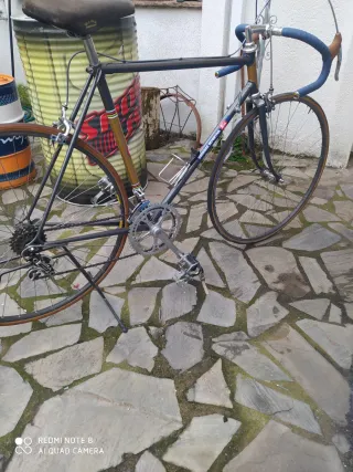 La bicicleta está recién restaurada, con manetas de freno, sillin, tija, cables y pedalier (incluye platos) nuevos. Entrego los pedales originales. Talla Grande (yo mido 1'91) ymás o menos está a la mitad. Cubiertas de 23mm en buen estado. Platos 50-34, piñones 13-21 Cambios Shimano Exage Ahora mismo algunos días la utilizo para ir a trabajar, así que la bici esta en orden de uso.