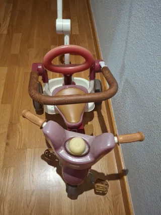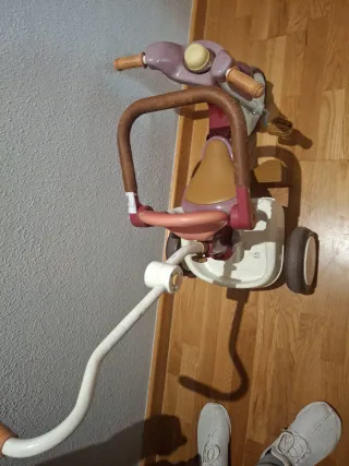 Triciclo infantil de color rosa y marrón, con un diseño pensado para los más pequeños. Regalo por cualquier compra del perfil - Manillar de empuje para adultos. - Asiento cómodo. - Ruedas resistentes.