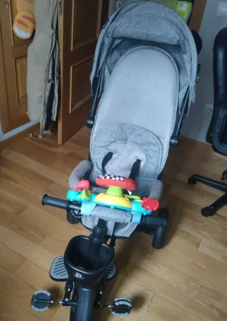 Triciclo evolutivo Kinderkraft en color gris, con muy poco uso. Ruedas como nuevas. - Diseño moderno y funcional. - Asiento acolchado para mayor comodidad. - Barra de seguridad. - Reposapiés. - Cesta de almacenamiento.