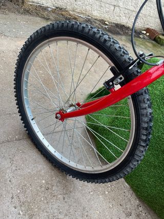 Bicicleta de paseo con un diseño llamativo en rojo y gris. Precio negociable - Cuadro de metal. - Ruedas todoterreno. - Sillín ajustable.