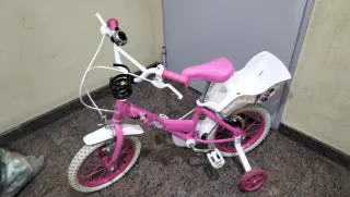 Bicicleta infantil rosa con ruedas de apoyo