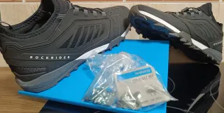 Sin usar por lesión. Zapatillas de ciclismo de montaña Rockrider ST Talla 46 en color negro. Diseñadas para ofrecer comodidad y agarre en tus rutas. - Cierre con cordones y velcro. - Suela de goma para tracción. - Parte superior de malla transpirable.