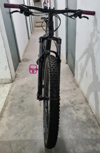 Talla XS, altura hasta 165. Casi a estreno, solo 8 salidas por cambio a eBike. Cuadro de aluminio. Suspensiones SUNTOUR de aire, 130 delante, 120 detras. Horquilla con ajuste en compresión y rebote y bloqueo, amortiguador solo regulación de rebote. Transmisión completa SRAM SX 12 vel. Frenos mejorados a SHIMANO MT506. Neumáticos prácticamente nuevos, usados siempre con camaras, no tubelizada. Tija telescopica cambiada por una totalmente nueva, a estreno de 125 mm. Pedales Magped Sport 2 de calas magnéticas por uno de los lados. No necesita mantenimiento, todos los puntos de giro revisados y engrasado, pedalier y dirección incluidos.