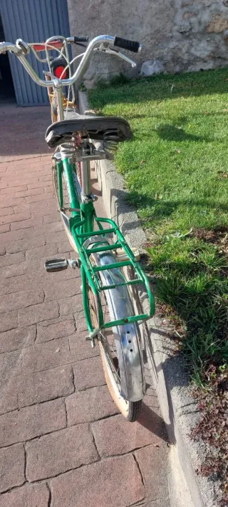 Se venden bicicletas antiguas en buen estado. - Color principal verde y rojo. - Ruedas de radios rojos. - Sillín azul y blanco.