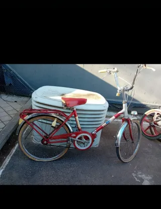 Bicicleta Garelli Original de los años 45, completamente restaurada y en perfecto estado de funcionamiento. Conserva todos sus componentes originales, incluido el sillín de cuero, los frenos de varillas y una cartuchera con herramientas antiguas. へ Equipada con cubiertas nuevas de 20", mantiene el encanto y la estética clásica de la época. Ideal para coleccionistas, amantes de las bicicletas vintage o decoración retro. Una auténtica joya del ciclismo histórico español. Precio: 1000 € (negociable).