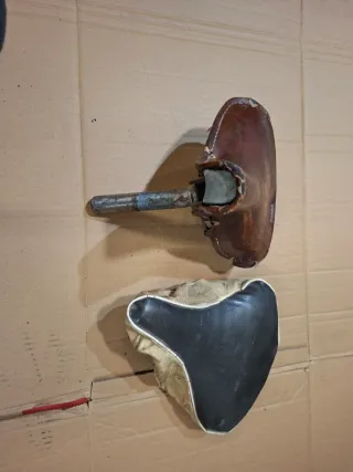 Asiento de bicicleta vintage, ideal para restauraciones. - Material: Cuero marrón y metal. - Diseño clásico.