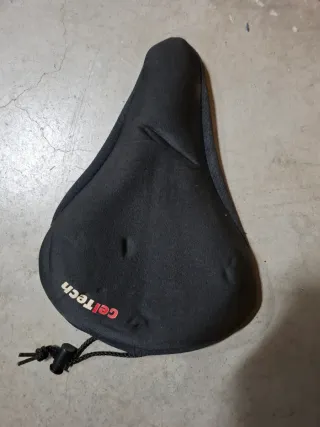 Funda de gel para sillín de bicicleta, marca GelTech. Diseñadas para añadir comodidad a tus rutas. Funda sillín GEL antiprostática. - Color negro. - Logo GelTech en rojo. En perfecto estado. Pvp nuevo 20 euros como se puede ver en las fotos