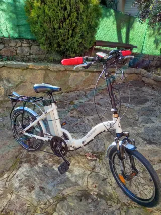 Bicicleta eléctrica en excelente estado, con muy poco uso. Ideal para desplazamientos urbanos o paseos. - Cuadro robusto. - Ruedas de buen tamaño. - Sillín cómodo. - Portaequipajes trasero.