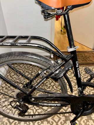Bicicleta de paseo en buen estado, talla 53. Ideal para desplazamientos urbanos. - Cuadro resistente. - Ruedas de buen tamaño. - Sillín cómodo. - Incluye portabultos trasero.