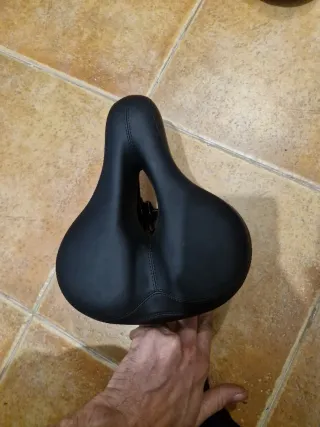 Sillín de bicicleta EN MUY BUEN ESTADO,MUY COMODO,con diseño ergonómico y acolchado para mayor comodidad. - Cubierta de cuero sintético. - Diseño con canal central. - Costuras reforzadas. TELEFONO DE CONTACTO 658245642