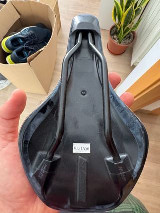 Sillín de carbono muy ligero y cómodo con alguna marca de uso.