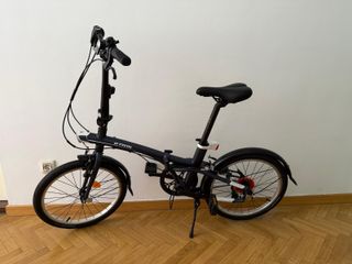Bicicleta BTWIN Fold 500 plegable en excelente estado, casi nueva, usada solo un par de veces. Ha pasado por el servicio técnico de Decathlon para ajuste completo de frenos, garantizando seguridad y perfecto funcionamiento. Características principales: - Color: azul marino - Ruedas de 20 pulgadas - Frenos V-brake - Guardabarros delantero y trasero - Pata de cabra Incluye de regalo: - Sillín de gel impermeable con funda protectora para la lluvia - Candado - Hinchador Ligera, cómoda y fácil de plegar para guardarla en casa, transportarla en coche o llevarla en transporte público.