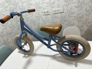 Bicicleta de equilibrio infantil de la marca Rebel Kidz, ideal para los primeros paseos, ha salido de casa un dia. - Color azul. - Puños y sillín en tono marrón. - Ruedas de goma con llantas de color crema. Se vende bicicleta Rebel Kidz sin pedales, perfecta para que los más pequeños aprendan a mantener el equilibrio antes de pasar a una bici con pedales. ✨ Características: • Marca: Rebel Kidz • Tipo: bicicleta de equilibrio (sin pedales) • Color: azul con detalles en marrón (sillín y puños efecto cuero) • Ruedas con neumáticos anchos para mayor estabilidad • Cuadro resistente y ligero • Sillín cómodo y ergonómico • Manill