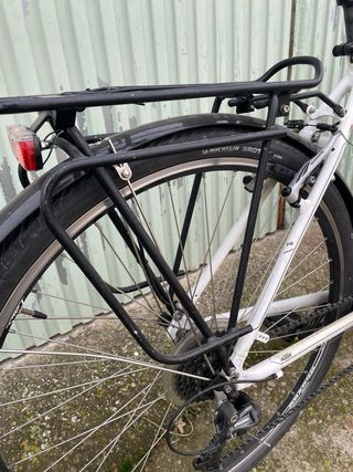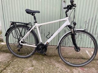 Bicicleta KTM de cicloturismo en color blanco muy completa. Todo funcionando y con muy poco uso - Cuadro de aluminio talla 52. - Ruedas de 28 pulgadas la delantera con dinamo en el buje. - Portabultos trasero. - Guardabarros. - Suspensión delantera. cambio shimano 21v sillin con tija amortiguada Portabultos Es una bicicleta muy cómoda que vale tanto como urbana como para salidas por camino. Me la quito por mudanza