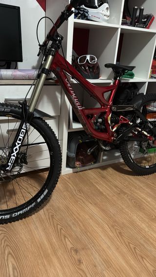 La bici se ha reacondicionado y tiene el mantenimiento hecho nuevo, está al dia para usarla. Ruedas 26” -Neumaticos schwalbe hans dampf 26.2,35mm sin estrenar -Camaras presta -Frenos hidraulicos shimano nuevos -Discos de freno 180mm -Horquilla delantera rock shox boxxer con el mantenimiento recien hecho -Manillar 780mm con puños nuevos -Cambio 8 velocidades -Sillin nuevo NEGOCIABLE Bicicleta de montaña doble suspension