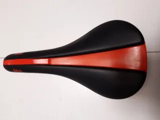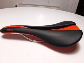 Sillín de bicicleta de montaña de la marca Fabric, modelo Scoop. - Color negro con detalles en rojo. - Diseño ergonómico para mayor comodidad. - 142mm ancho -Dos meses de uso