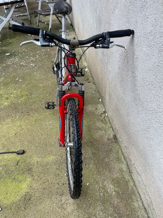 Vendo bicicleta de montaña con doble suspensión, perfecta para rutas y caminos largos. Cuadro de aluminio resistente en color negro con detalles en rojo y blanco. Horquilla delantera con suspensión y amortiguador trasero para mayor comodidad en terrenos irregulares. Frenos de disco delantero y trasero. 21 velocidades. Ruedas con llantas Air One y neumáticos de tacos en buen estado. Sillín cómodo y ajustable. La bicicleta está en buen estado y lista para usar. Ideal para iniciarse en el MTB o para salidas recreativas. Es talla M con ruedas de 26 pulgadas