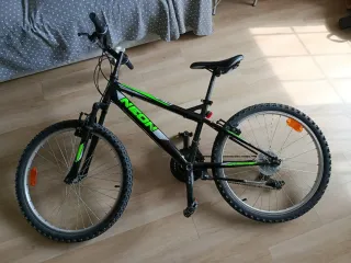 Bicicleta de montaña con un diseño llamativo en negro y verde.9-12 años - Cuadro de bicicleta. - Ruedas de bicicleta. - Manillar de bicicleta. - Sillín de bicicleta.