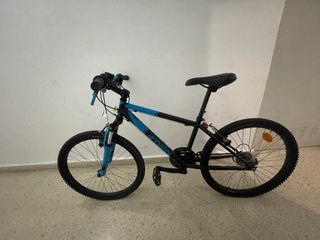 Bicicleta infantil de color azul y negro, adecuada para su uso tanto en ciudad como en montaña. - Ruedas de 24 pulgadas. - Frenos delanteros y traseros. - Sillín ajustable en altura. - 6 cambios y 3 piñones