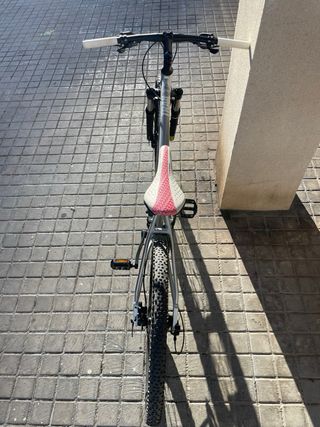 Bicicleta de montaña gris y rosa