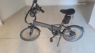 Bicicleta eléctrica Btwin Oxilyne en color gris y negro. NUEVA. Ver en PERSONA. Veo PROPUESTAS SENSATAS . - Diseño plegable. - Con funda de trasporte - Espejo...candado..... - Ruedas de 20 pulgadas. - Pedales pegables - Batería integrada en el cuadro. - Cable de carga - Sillín negro acolchado. - Guardabarros delantero y trasero.