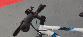 Bicicleta de carretera con manillar plano. Horquilla, manillar y sillín de carbono Desarrollo 2x10 Buenos componentes Talla M