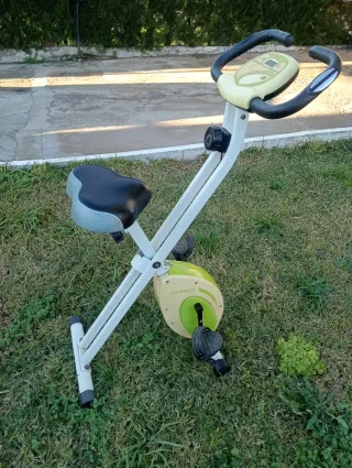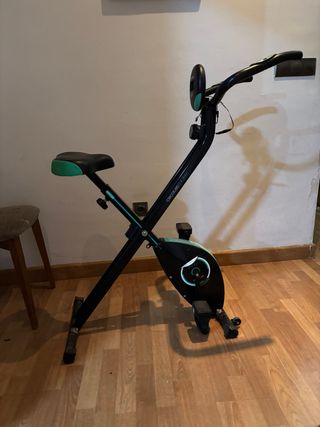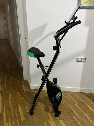 Bicicleta estática Cecotec modelo X-BIKE, diseñada para ser plegable y ocupar poco espacio. - Color negro con detalles en verde. - Manillar ergonómico. - Sillín acolchado. Poco usado. Display sin pilas