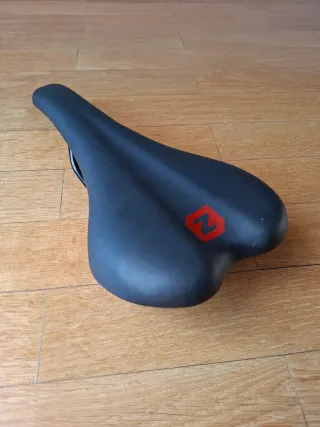 Sillín de bicicleta de una Smart z bike en color negro con un distintivo logo rojo, a estrenar, lo quité nada más estrenar la estática por otro modelo. - Diseño ergonómico.
