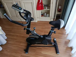 Bicicleta estática de la marca Vixxon, ideal para entrenamientos en casa. La vendo por que me mudo y no me cabe - Diseño robusto y estable. - Manillar ergonómico. - Sillín ajustable en altura y profundidad. - Pedales con correas de sujeción.