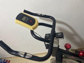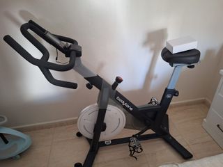 Bicicleta spinning BH Modena con pedales automáticos B-Twin mixtos mas pedales originales y loneta protectora original. Manillar ergonomico y consola cuenta kilometros y datos....mas sillin ergonómico para proteger la zona pelbica. Ideal para hacer ejercicio en casa sin impacto y ponerse en forma.
