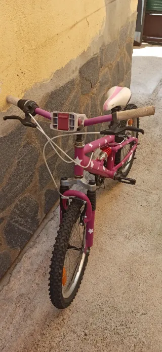 Bicicleta infantil de montaña (BTT) con ruedas de 20 pulgadas. Ideal para los más pequeños. - Color rosa con divertido diseño de estrellas blancas. - Suspensión delantera y trasera para mayor comodidad. - Sillín blanco y rosa. - Ruedines no incluidos.