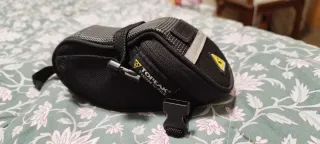 Hola vendo Bolsa de sillín de la marca Topeak, usada pero en perfecto estado. Tiene alojamiento para sujetar luz trasera. También cambiaría por bolsa mini solo sujeción de railes de sillín , que no sujete a la tija No leer; alforjas,bolsas,sillín,gravel.btt,mtb,road,carretera,ebike. La bolsa está de coña, la vendo porque tengo tija telescopica.