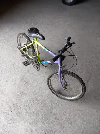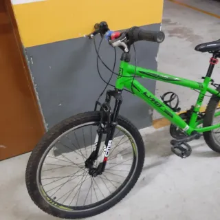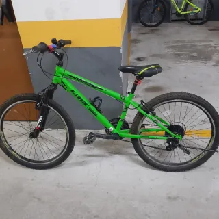 Bicicleta de montaña prácticamente como nueva de 24 pulgadas. Cambios shimano sis index, suspensión delantera, 3 platos y siete piñones,neumáticos mitas, etc..... Se ha usado tres veces contadas. Esta totalmente como nueva. Pago y recogida en mano en metálico. NO ACEPTO CAMBIOS NI REGATEOS. NO RESERVO. - Ruedas de 24 pulgadas. - Color verde - Sillín deportivo con detalles en amarillo. - Frenos de disco delanteros.