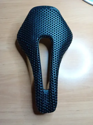 Sillín de bicicleta de montaña (BTT) carcasa de carbono T700 raíles carbono 7x9 mm. Cubierta en malla 3D de de naylon en forma de panel abeja. -pesa 153 gr. Súper ligero y resistente - totalmente nuevo usado una vez compra por error en el ancho. - medidas 145 ancho y largo 250 mm.
