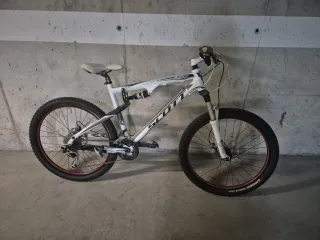 Bicicleta de montaña Scott Spark 50. 26" - Cuadro de aluminio. - Suspensión delantera y trasera. - Frenos de disco avid juicy - Cambio Shimano slx El amoortiguador trasero funciona modo manual no manillar pero se podria montar ya que tiene para prepararlo, el delantero tiene bloqueo manillar. Ruedas nuevas pastillas de freno nueva y purgadas. Sillin tengo otro guardado original y el que lleva. Amortiguador trasero dt swiss y delantero rock shox recon. Se ve sucio , si esta interesado le pegaremos el fregao y limpita Esta bien, por supuesto usada y el desgaste es de pintura. Regalo piñonera xt que tengo guardada y nueva