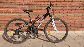 BICICLETA MONTAÑA BH OVER-X ELLE Bici MTB con 21 velocidades. Talla S/M Estatura 1,60 - 1,75. Color negro y morado Cambio en puño Shimano Tourney TX55 Suspension delantera. Horquilla BH Over X Rueda de 26. Frenos V-BRAKE. Bielas SR Suntour XR Sillín cómodo. Unos 10kg de peso Se vende por motivos de talla, le queda pequeña. Lista para rodar