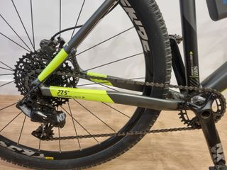Bici BTT B'TWIN ROCK RIDER 900 DECATHLON de montaña, cuadro de aluminio 6061 DOUBLE BUTTED ALUMINIUM, CROSS COUNTRY GEOMETRY, cambio trasero y maneta de cambio y bielas SRAM NX, monoplato SRAM de 32 dientes y cassette de 11 piñones (11-42), Talla: L, 11 velocidades, ruedas 27.5 pulgadas, llantas MAVIC CROSSRIDE, cubiertas HUTCHINSON PYTHON 2 27.5x2.10. horquilla manitou m-30 con suspensión delantera y bloqueo desde el manillar COMBOLOCK de 2 posiciones. Frenos de disco hidráulicos B'TWIN by TEKTRO delantero y trasero. Recién purgados y muy poco usado. Sillín Selle Royal. En muy buenas condiciones, lista para disfrutar con accesorios