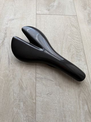 Full carbono, muy ligero y rígido. Diseño ergonómico con canal central para aliviar presión y mejorar la comodidad en salidas largas. Ideal para bicicleta de carretera o mtb. Acabado en carbono brillante. Peso: 103 gramos. Medidas: 27cm de largo y 15cm de ancho. En muy buen estado, sin grietas ni golpes. Se vende por cambio de sillín.