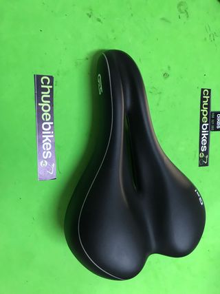 artículo nuevo a estrenar. sillín de gel con canal antiprostatico. mide 250mm de largo x 150mm de ancho y tiene un peso de 330 gramos. no es ni muy duro, ni muy blando. mismas prestaciones que los de la marca specialized. valido para MTB Y carretera. más artículos en mi perfil. taller resucitabicis.