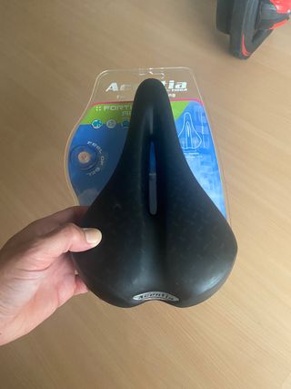 Sillín muy cómodo de gel. Ergonómico y con hendidura antiprostática. Nuevo a estrenar