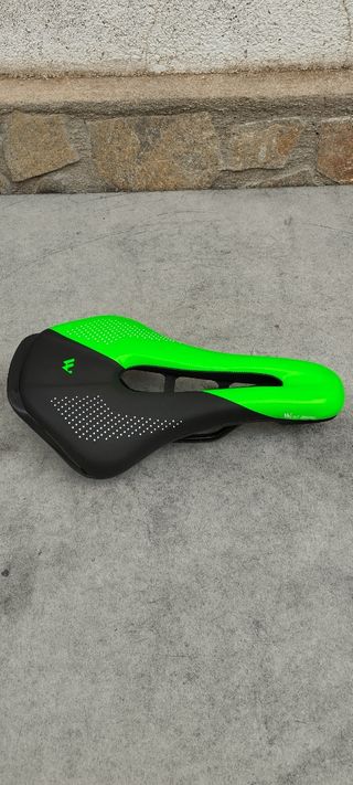 artículo nuevo a estrenar. sillín bicolor verde y negro de 330 gramos de peso con canal antiprostático. mide 150 de ancho x 250 de largo. no es ni muy duro ni muy blando. mismas características que los sillines de la marca specilized. válido para cualquier disciplina. más artículos en mi perfil.