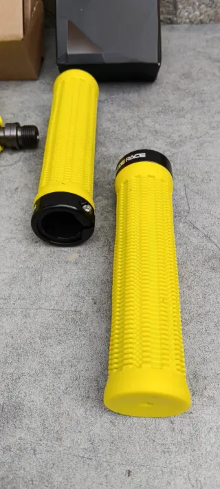 artículo nuevo a estrenar. deja guapa la bici con este juego que te ofrezco. se compone de lo siguiente: - sillín de gel West Biking bicolor en negro/amarillo con canal antiprostatico. - pedales de plataforma en color amarillo. son de naylon con pines y refractarios en los laterales. - puños RIDERACE de goma con abrazadera. se agarran muy bien. más artículos en mi perfil. taller resucitabicis.