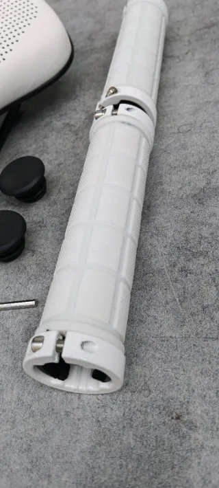 artículo nuevo a estrenar. juego compuesto por: - sillín de gel West Biking en color blanco con canal antiprostatico. - puños de goma con doble abrazadera y tapones. incluye llave de montaje. más artículos en mi perfil. taller resucitabicis.