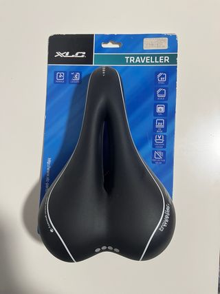 Sillín de bicicleta XLC Traveller II, diseñado para ofrecer comodidad. •Comodidad total: Relleno de GEL anatómico y tecnología D2-Base que absorbe los baches. •Diseño antiprostático/ergonómico: Apertura central (Zonefullcut) para aliviar la presión y mejorar la ventilación. •100% Impermeable: Construcción al vacío sin costuras, no se cala si llueve. •Fácil de ajustar: Rieles de acero con escala graduada para un montaje preciso. •Seguridad: Detalles reflectantes en la parte trasera para ser más visible.