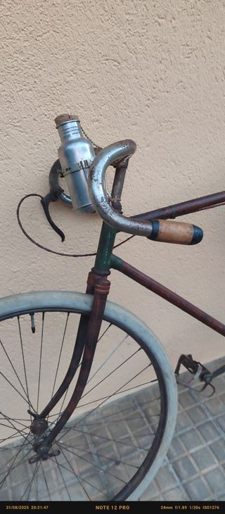 Bicicleta clásica de los años 30, una pieza de colección. Rebajada de 500€ Último precio NO REBAJO, NO ENVIO Corrí con ella en Eroica ( Cenicero - la Rioja,2019 ) - Cuadro de metal resistente. - Ruedas de radios. - Sillín de cuero. - Patina original - Bolsa de herramientas de cuero - Portabotellín delantero - Rastrales - Manillar con puños madera